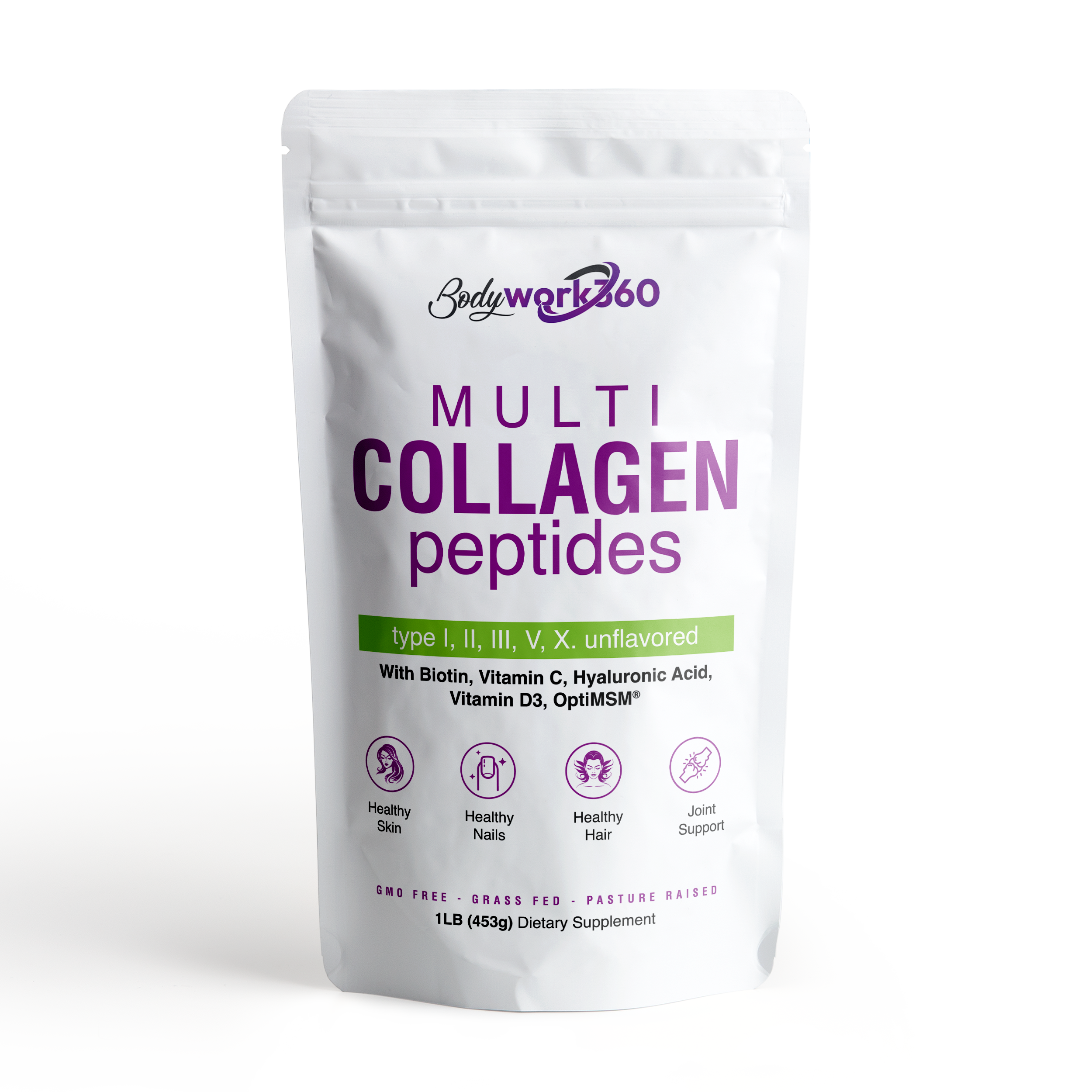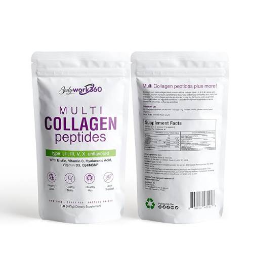 Multi Collagen Peptides Powder | Type I,II,III,V,X with Hyaluronic Acid, Biotin, Vitamin C, Vitamin D3 & OptiMSM - Unflavored